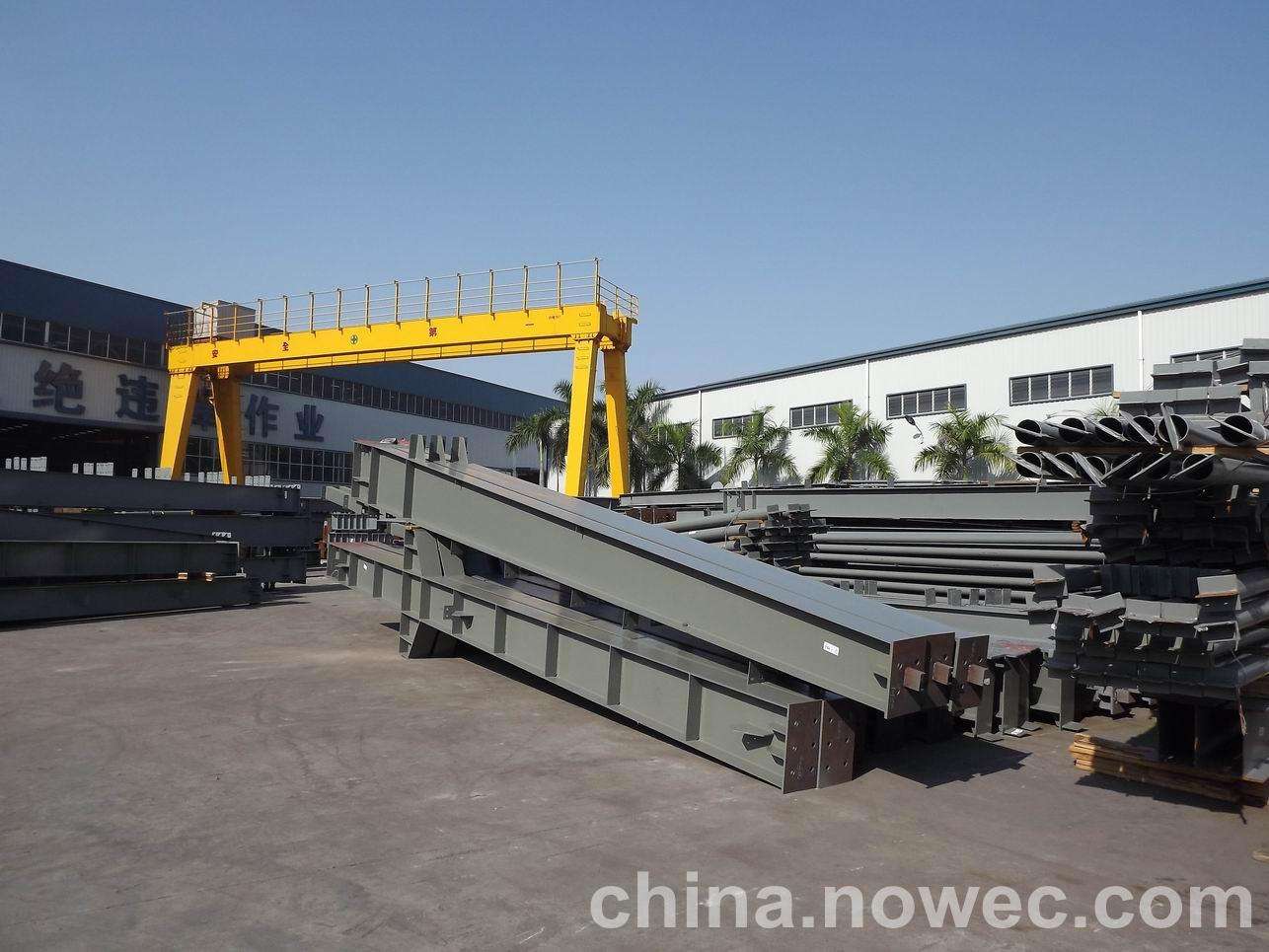 条状单元一般沿长跨方向分割,其宽度约为1~3个网格,其长度为l2或l2/2(l2为短跨跨距)。块状单元一般沿胶南网架平面纵横向分割成矩形或正方形单元。每个单元的重量以现有起重机能胜任为准。条(块)与条(块)之间可以直接拼装,也可空一网格在高空拼装。由于条(块)状单元是在地面拼装,因而高空作业量较高空散装法大为减少,拼装支架也减少很多,又能充分利用现有起重设备,故较经济。这种安装方法适用于分割后网架的钢度和受力状况改变较小的各类中小型网架,如两向正交正放四角锥、正放抽空四角锥等网架。